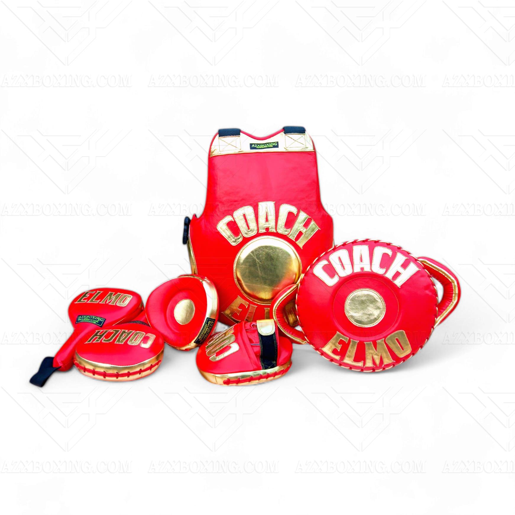 The AZX Full Coaching Kit (Red & Gold Edition) is the ultimate training solution for professional boxing coaches. Built with A+ grade premium leather and high-density foams, this set is designed to cover every aspect of training — from speed and precision to power and body conditioning.